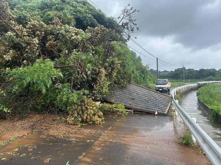 道路法面崩壊により道路の通行が不可となっている状況です。
