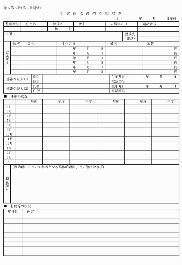3 市長は、滞納が3箇月分となった入居者について、市営住宅滞納者整理票(様式第5号)を作成し、督促等の状況を整理するものとする。