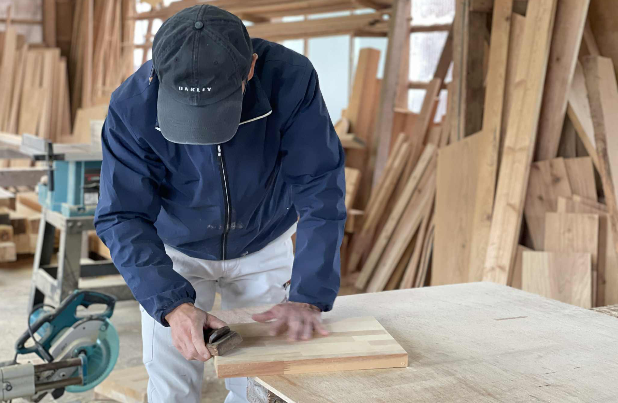 地域の大工さんによる木材加工のデモンストレーションや、大工さんと一緒に、木製ミニオブジェ作り、木製マグネット作り、飾り棚作りなどの木工ワークショップなど