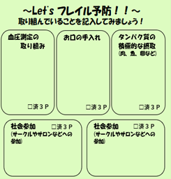 ポイントカード裏面に記載のフレイル予防に関する取り組み (~let’s フレイル予防~の部分) |